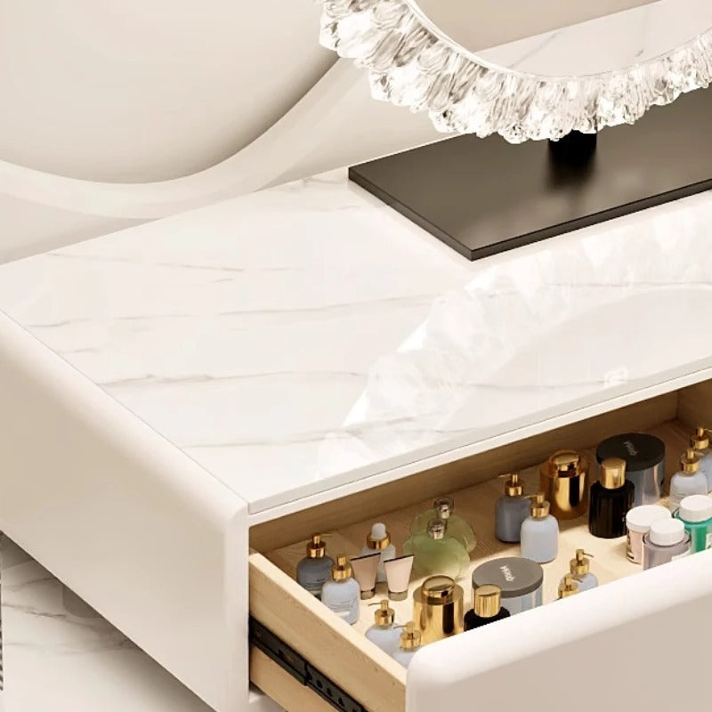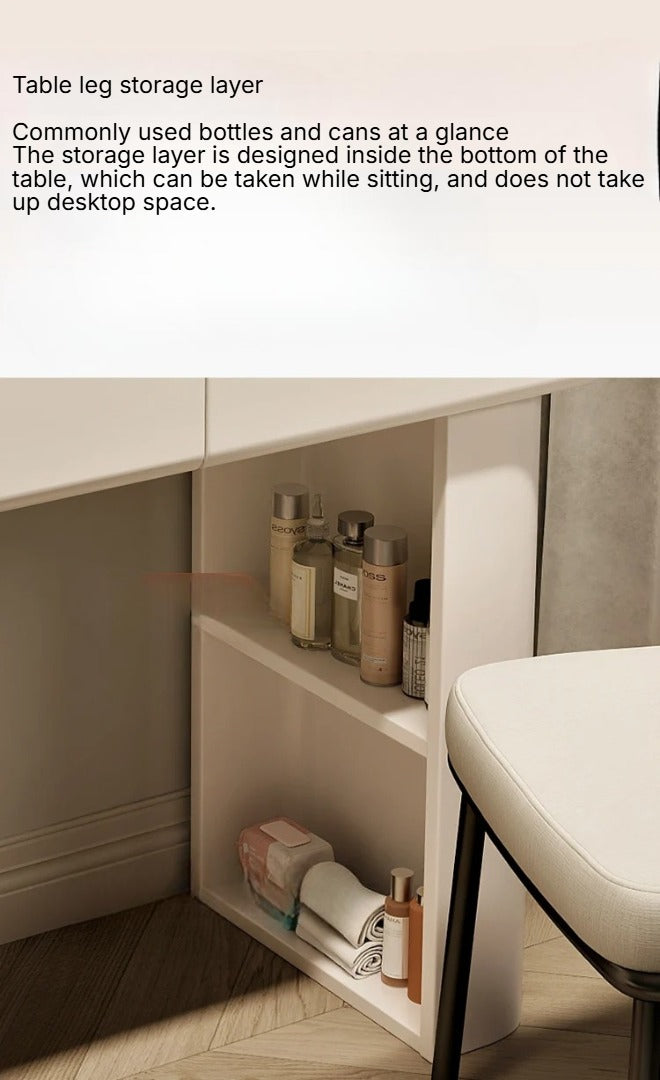 Elevate your bedroom with this sleek white dressing table set, featuring a modern handless design for a clean, sophisticated look. The set includes a comfortable stool and a crystal-clear mirror, combining functionality with elegance. Its minimalist style enhances any décor while providing ample space for your beauty essentials. Perfect for creating a refined and organized vanity area.