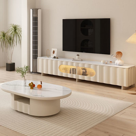 Plain Living room Table Set. TV Unit Mesa Marble Top.