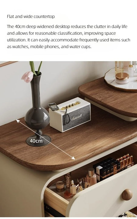 - Package: 1× Dresser, 1× Makeup Mirror, 1×Stool, 1×Storage drawers