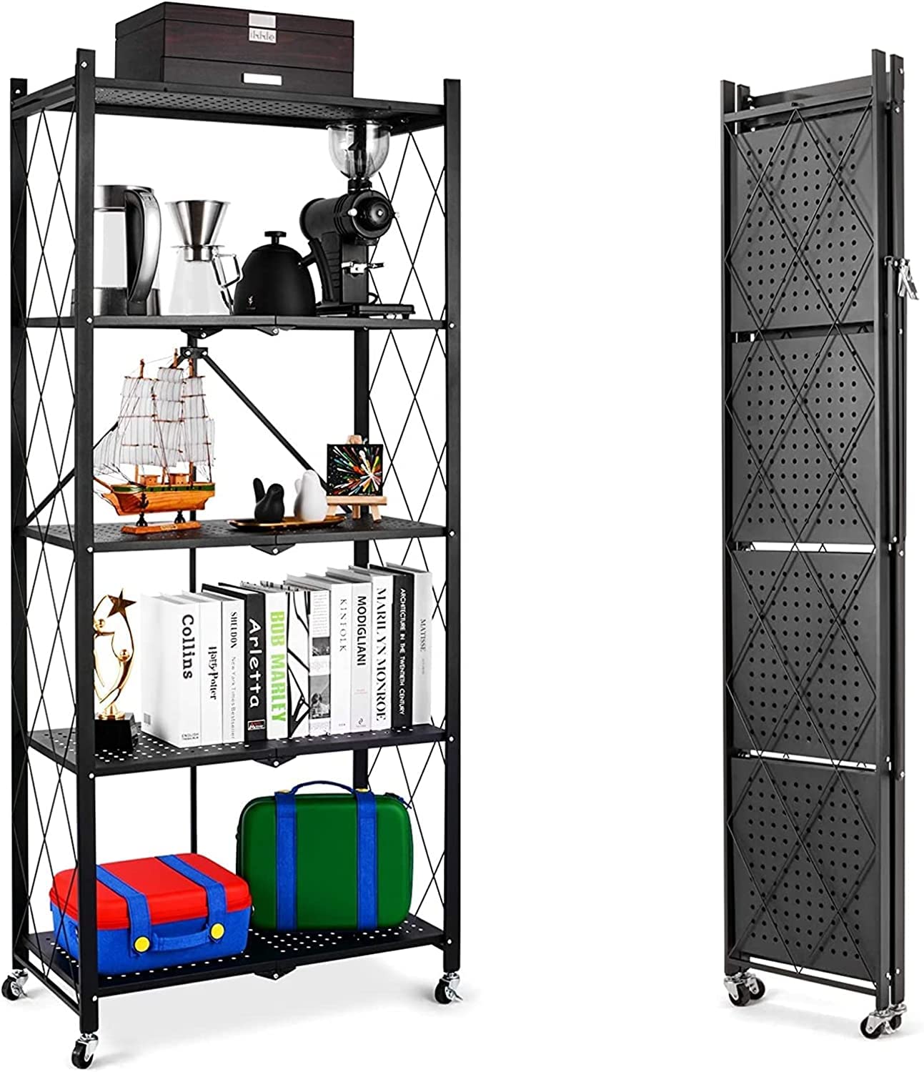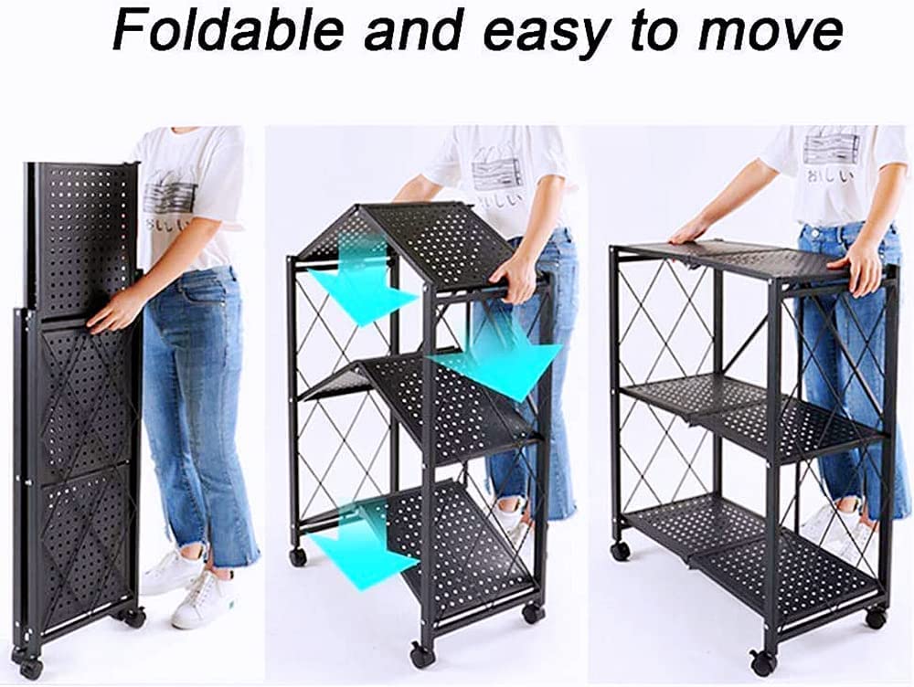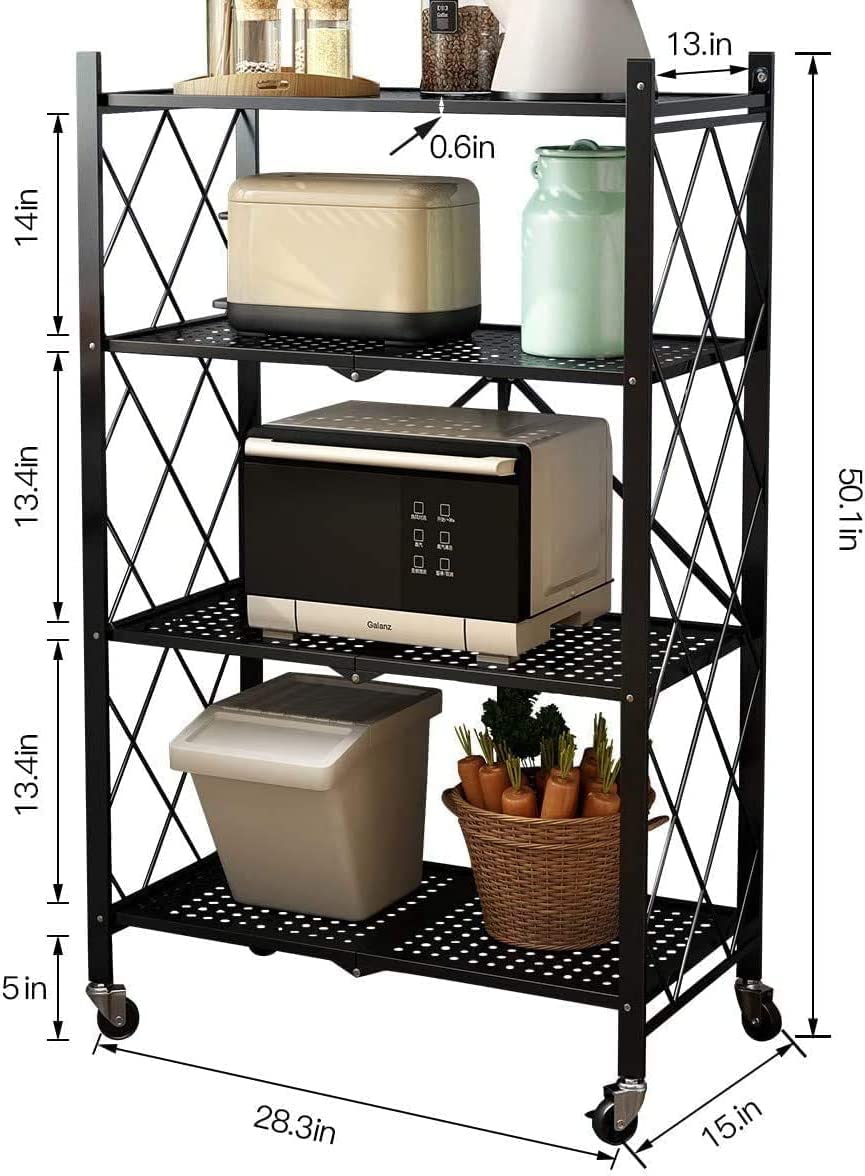 Foldable Storage Organizer 5 Tier, Kitchen Cabinet Storage Rack, Multipurpose Rack for Living Room Bedroom Kitchen Garage Black.