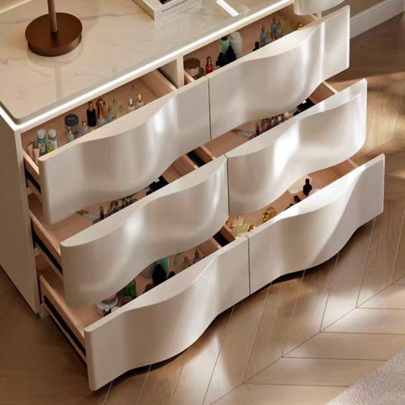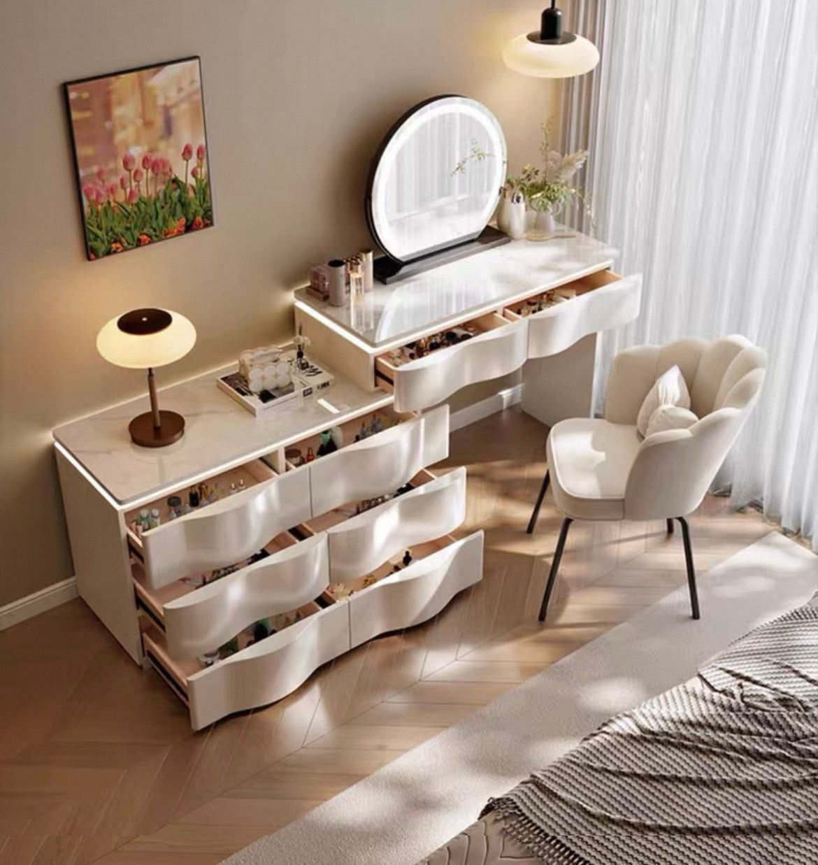 Elevate your bedroom with this modern luxury dressing table set, designed exclusively for women who value both style and functionality. Crafted with a premium wood finish and topped with an elegant slate ceramic surface, this vanity exudes sophistication while offering practical storage solutions.