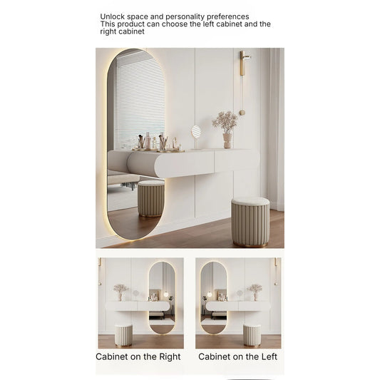 • Wall-Mounted Dressing Table, Oval Full Length Lighted Mirror, 2 Storage Drawers.