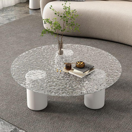 Round Coffee Table Wooden Base, Tempered Glass Countertop, Living room Center Table.