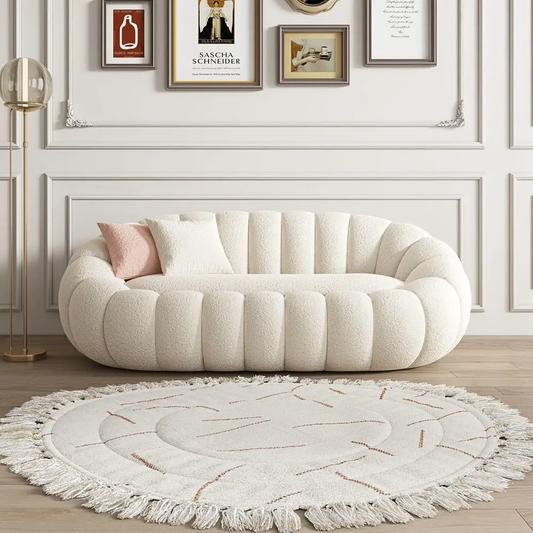 Living room Sofa Set, Trendy Pumpkin Design, Boucle Upholstery.