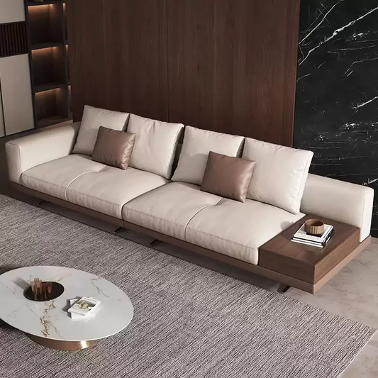 Modern Simple Sofa With One Sided Armrest, Upholstered in Leather.
