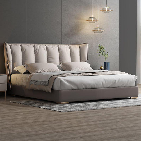 Modern Upholstered Bed with Padded Wingback Headboard.