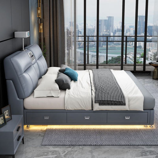 Luxury Smart Bed with Projector, Bluetooth Speaker, Air Purifier, Smart Sensor Light, Three Drawer Storage.