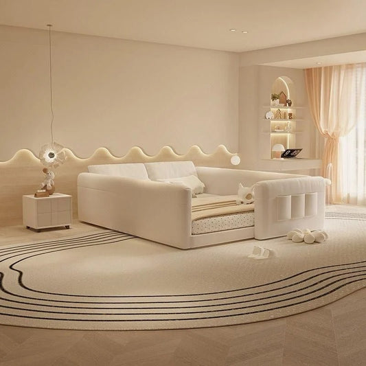 Modern Curved Bed Frame Wavy Style King Size Bed, Upholstered Bed Leather
