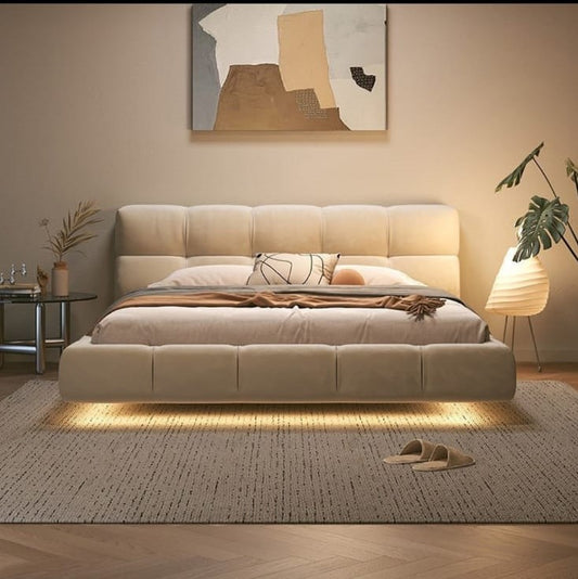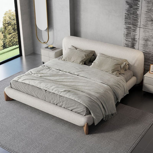 Light Modern Bed, Upholstered Fleece Fabric, High End Headboard for Bedroom.