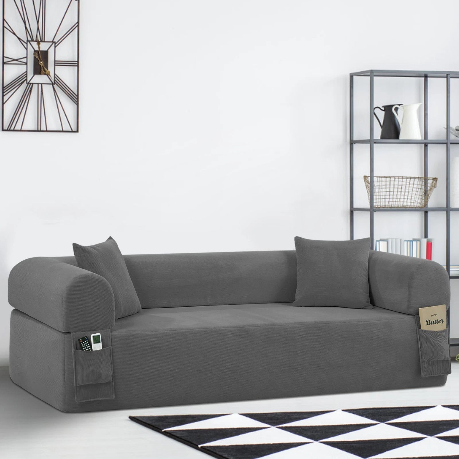 Transform your living room into a comfortable retreat with this inviting 3-seater couch. Built on a sturdy solid wood frame for lasting durability, it features plush sponge filling that cradles you in softness. Convenient side pockets keep remotes, magazines, and essentials within arm's reach, making relaxation effortless. Perfect for families or anyone seeking a cozy gathering spot that combines comfort with practical design.