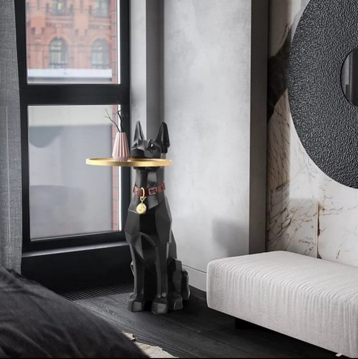 Coffee Table Like Dog Shape Holding Tray, Doberman Holding Tray Sculpture, 72H cm
