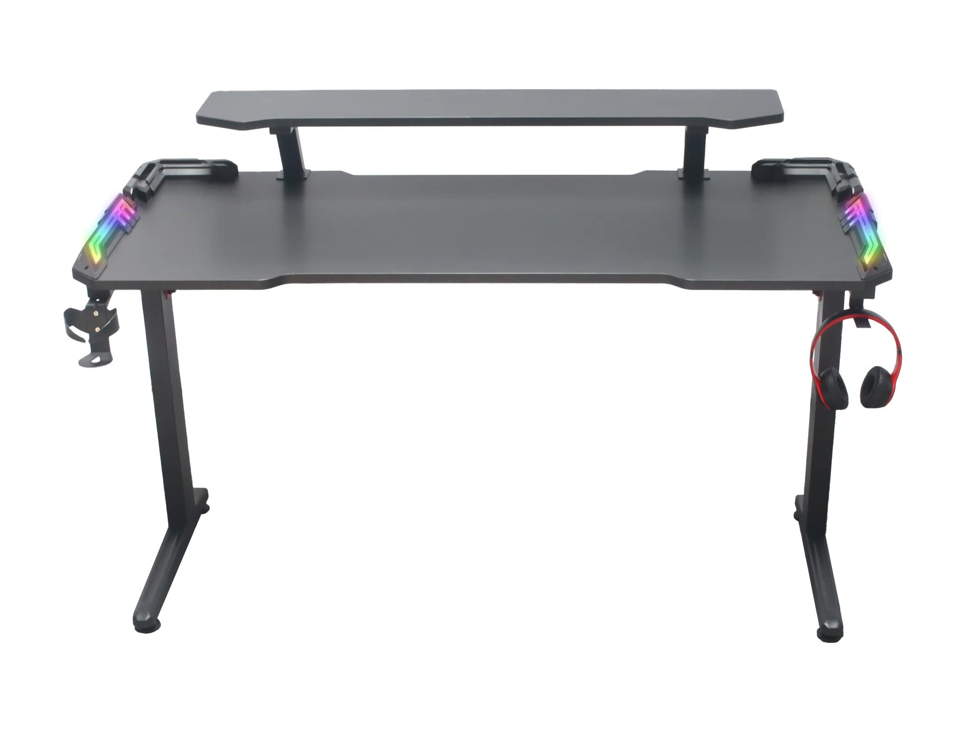 Gaming Desk Table With RGB light, Computer Desk, Cup Holder and Headphone Hook Gamer Workstation Game Table.