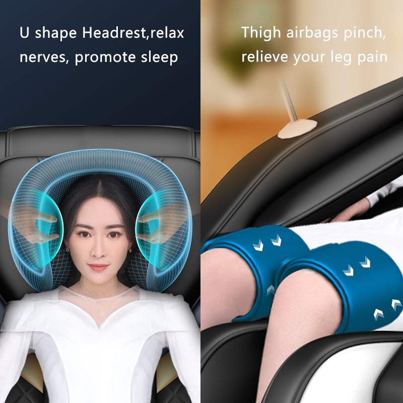 Our massage chair is upgraded with 6 hips rollers, 360° rotation designed to perform a variety of massage techniques such as rolling, kneading, and tapping, alleviate the discomfort of sitting for long periods.