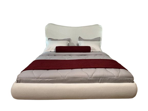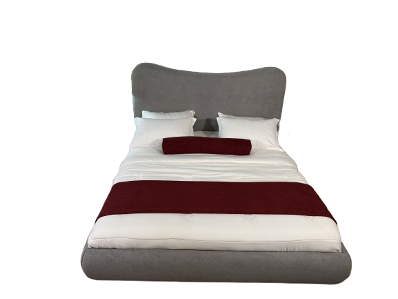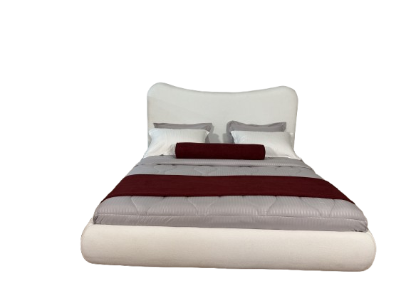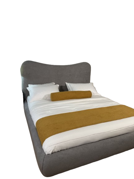 This modern curved upholstered bed exudes sophistication and comfort, making it a focal point for any bedroom. Its sleek, minimalistic design blends luxury with contemporary aesthetics, featuring a softly curved headboard and a low-profile frame.