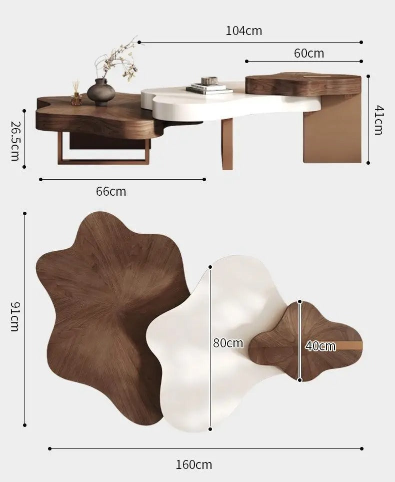 Elevate your living space with this modern 3-piece cloud coffee table set, a true blend of artistic elegance and functional design. This unique living room centerpiece features two interconnected tables and one separate, freestanding piece, designed in a fluid, organic shape that mimics soft cloud forms. A perfect combination of contemporary style and natural tones, this sculptural coffee table is ideal for luxury interiors, modern apartments, or minimalist home decor themes.