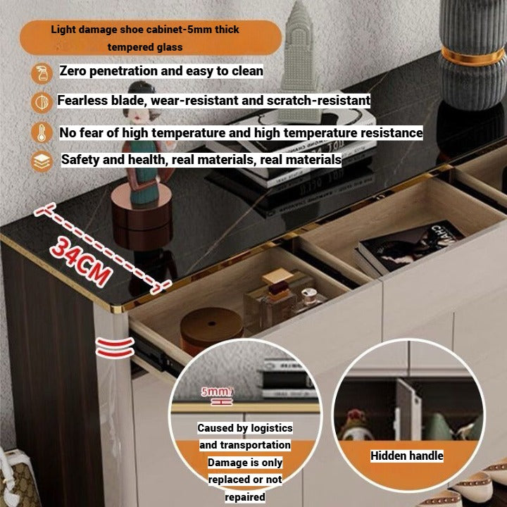 Shoe Cabinet Storage Racks, Tempered Glass Top.
