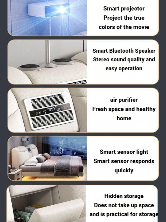 Smart Bed with Projector, Bluetooth Speaker, Air Purifier, Smart Sensor Light for Bedroom
