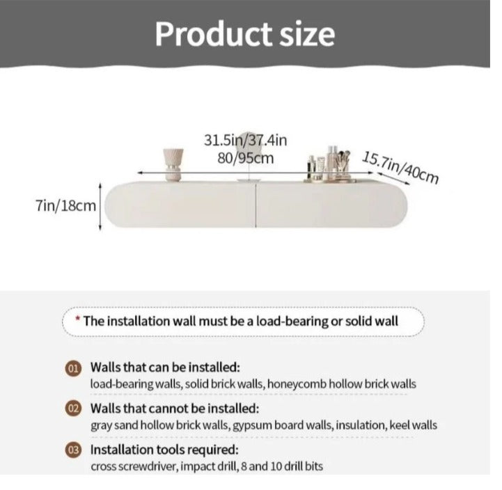 Elevate the aesthetic of your bedroom or vanity area with this modern wall-mounted dressing table set. Combining sleek design with practical functionality, this set includes a space-saving floating vanity table, a large illuminated round mirror, and a comfortable matching stool. Perfect for contemporary homes, this set enhances your space with a luxurious yet minimalist touch.