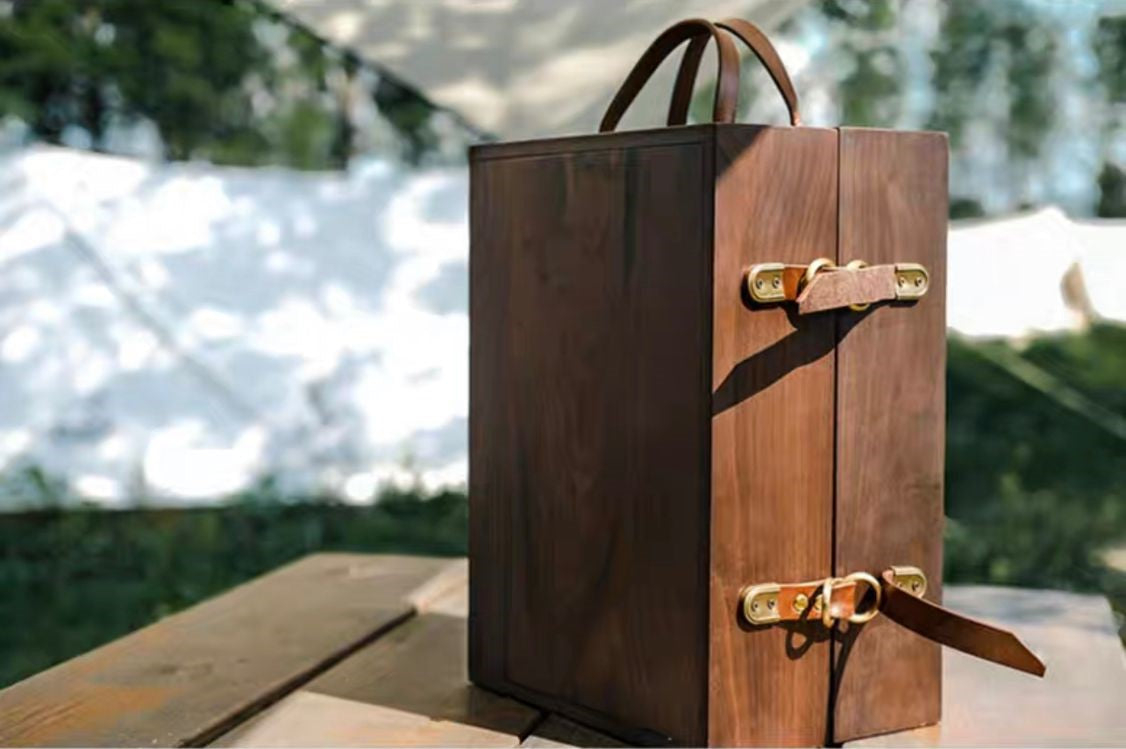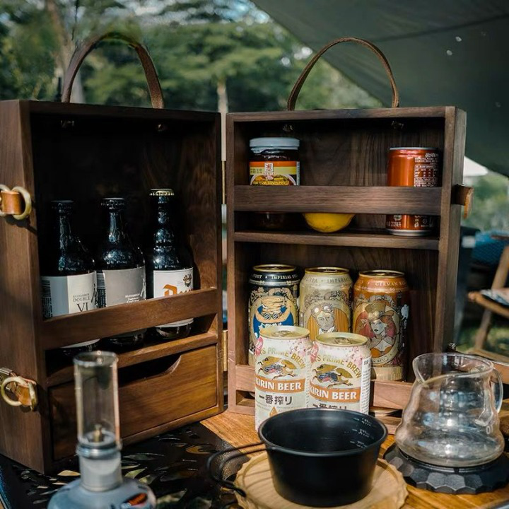 Wooden Storage Box, Seasoning Organize Container, Kitchen Organizer Spices Box, Camping battles jars Holder, Picnic Outdoor Condiments Organizer Set.