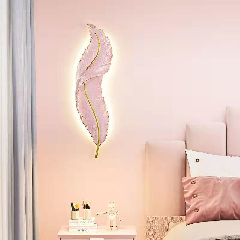 Artwork Feather Wall Light, Creative Resin Wall Lamp Décor, Indoor Living room Light, 90H x 18 W cm.