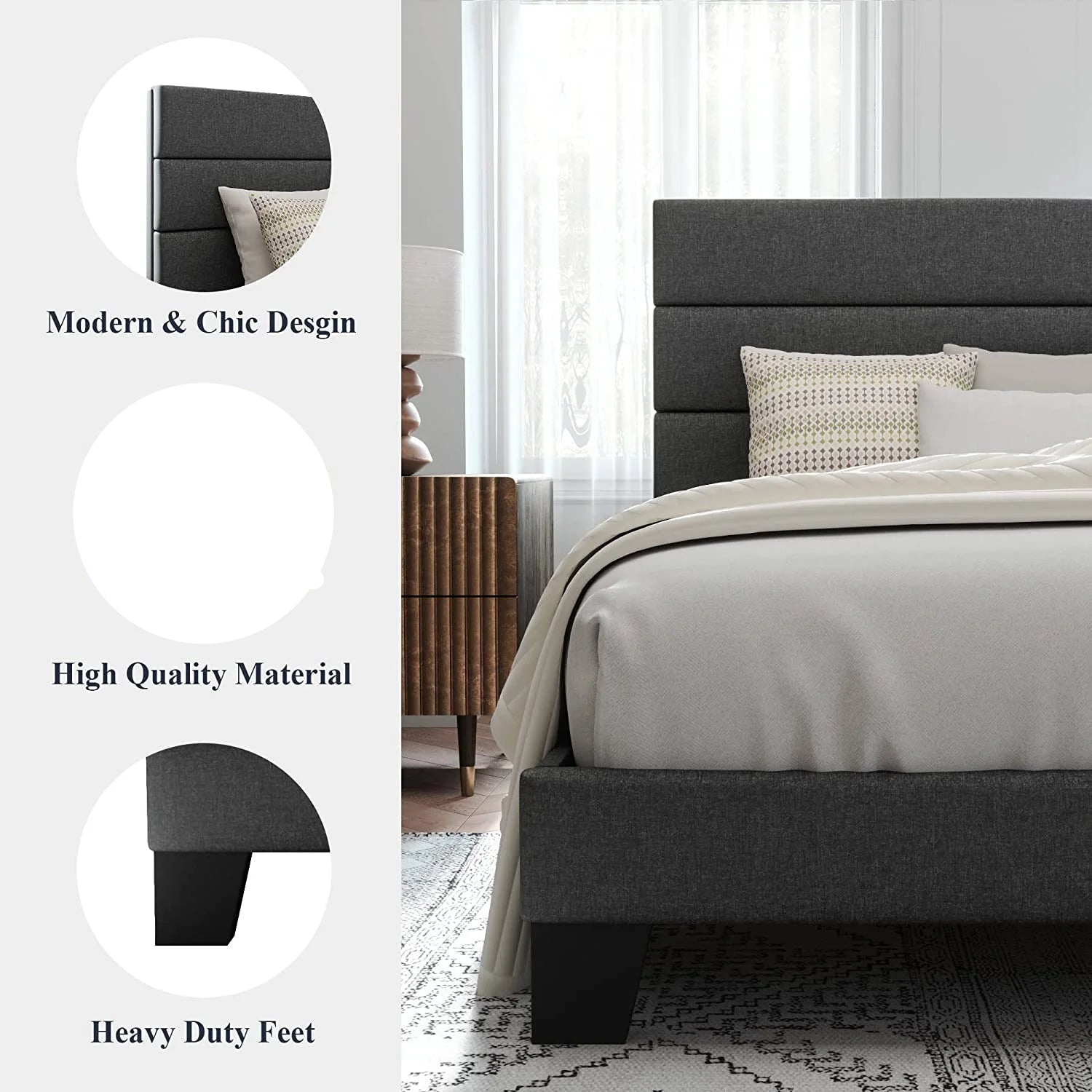 Platform Bed Frame with Fabric Upholstered Headboard.