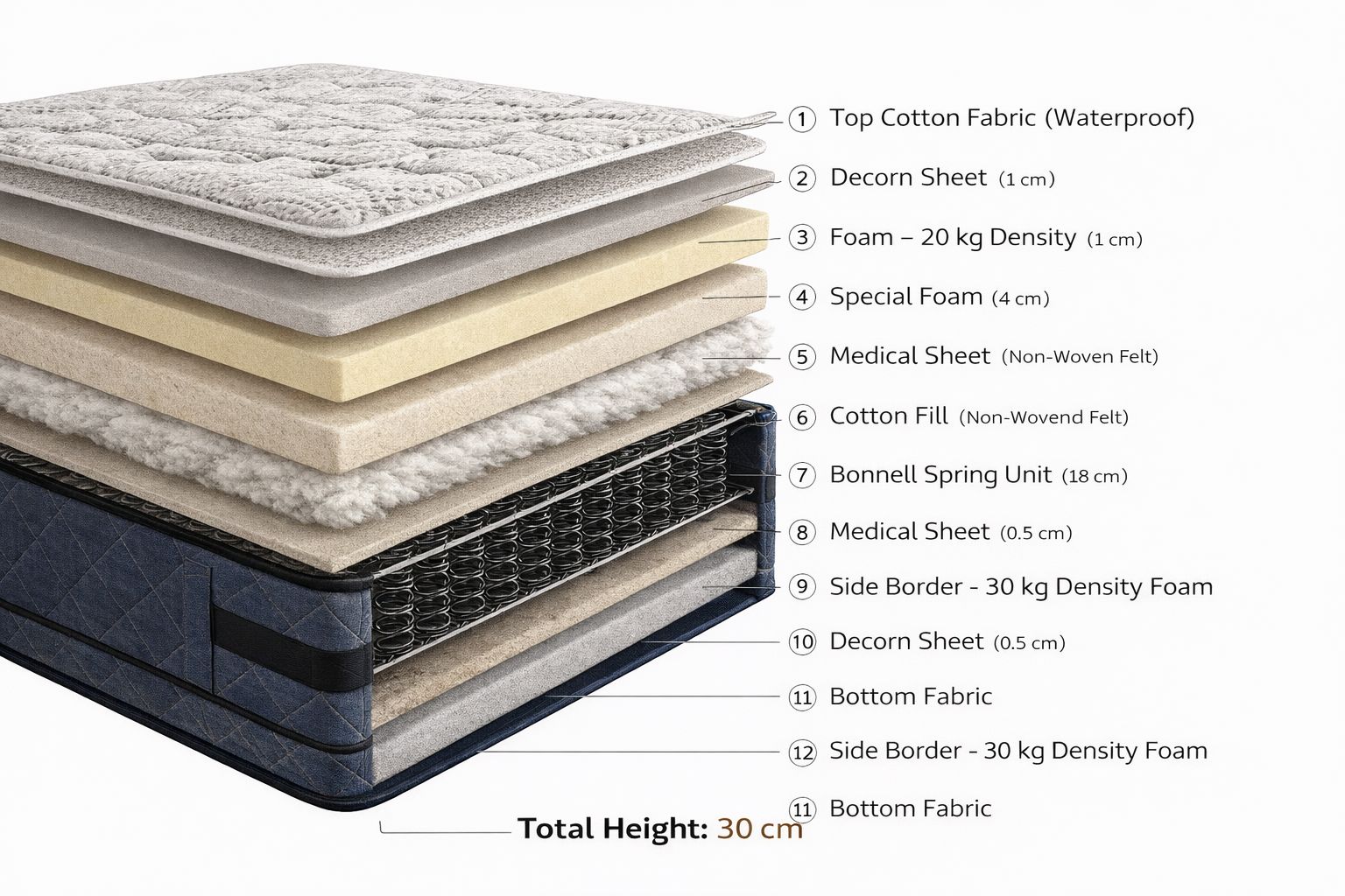 LARA Bonnell Spring Premium Mattress, Firm Plush, 7 Years Warranty.